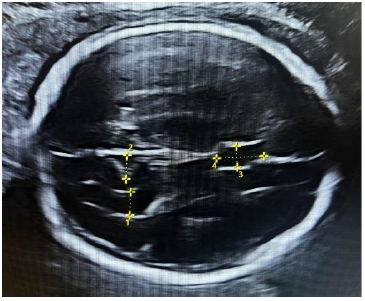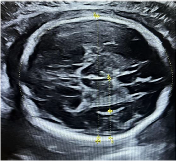 Ultrasound measurements: All participants underwent transabdominal ultrasonography using a Voluson E8 ultrasound system (GE Healthcare, USA). The ultrasound assessment included the measurement of several brain parameters: HC, BPD, insular depth, SF depth, POF depth, and CSP width. Each patient was assessed three times by an experienced sonographer, and all measurements were independently checked by a second examiner to ensure accuracy and reliability. To reduce shadowing artifacts from the fetal skull, all measurements were acquired from the hemisphere contralateral to the ultrasound probe, regardless of fetal orientation. Several derived ratios were calculated, including SF/Insula, POF/Insula, POF/BPD, SF/BPD, Insula/BPD, ventricle diameter/BPD, and CSP width/BPD.
