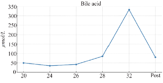 The diagnosis of ICP in this patient aligns with contemporary guidelines, which define the condition by maternal pruritus and non-fasting serum bile acid levels >19 µmol/L (9). In her third pregnancy, bile acid levels were monitored from 20 weeks, peaking at approximately 333 µmol/L by 32 weeks (Figure 1), well above the diagnostic threshold. However, the unavailability of bile acid testing in her first two pregnancies (2021–2022) reflects a common challenge in resource-limited settings (11). This limitation likely delayed definitive diagnosis and management in her earlier pregnancies, potentially contributing to adverse outcomes such as the neonatal death at 29 weeks in her first pregnancy and the IUFD at 24 weeks in her second. These findings emphasize the importance of early and accurate diagnosis. Elevated bile acid levels ≥100 µmol/L are associated with a significantly increased risk of stillbirth, with a modestly elevated risk also observed at levels >40 µmol/L after 38 weeks of gestation.